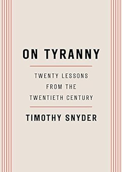 I read this book a few months back and it has stayed with me ever since. I am now suggesting it to friends, who are like minded. In truth, I should be sending it to everyone, like minded or not. It is an important book that could serve as a guide to recognizing tyranny in our world today. I quote "How we defend ourselves against the suppression of fundamental freedoms has once again become a matter of great urgency". So, how do we defend democracy in the age of Trump??? This is a wonderful and chilling discourse. Dr. Snyder has laid out in simplistic, brief, comprehensible language what could be happening in our world.